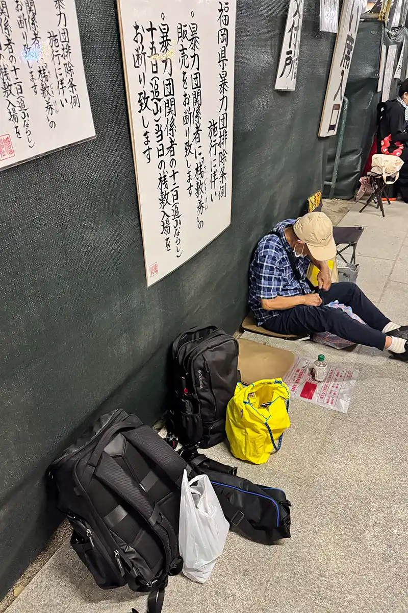 私は前日の夜10時頃から櫛田神社で場所取りに並びました。