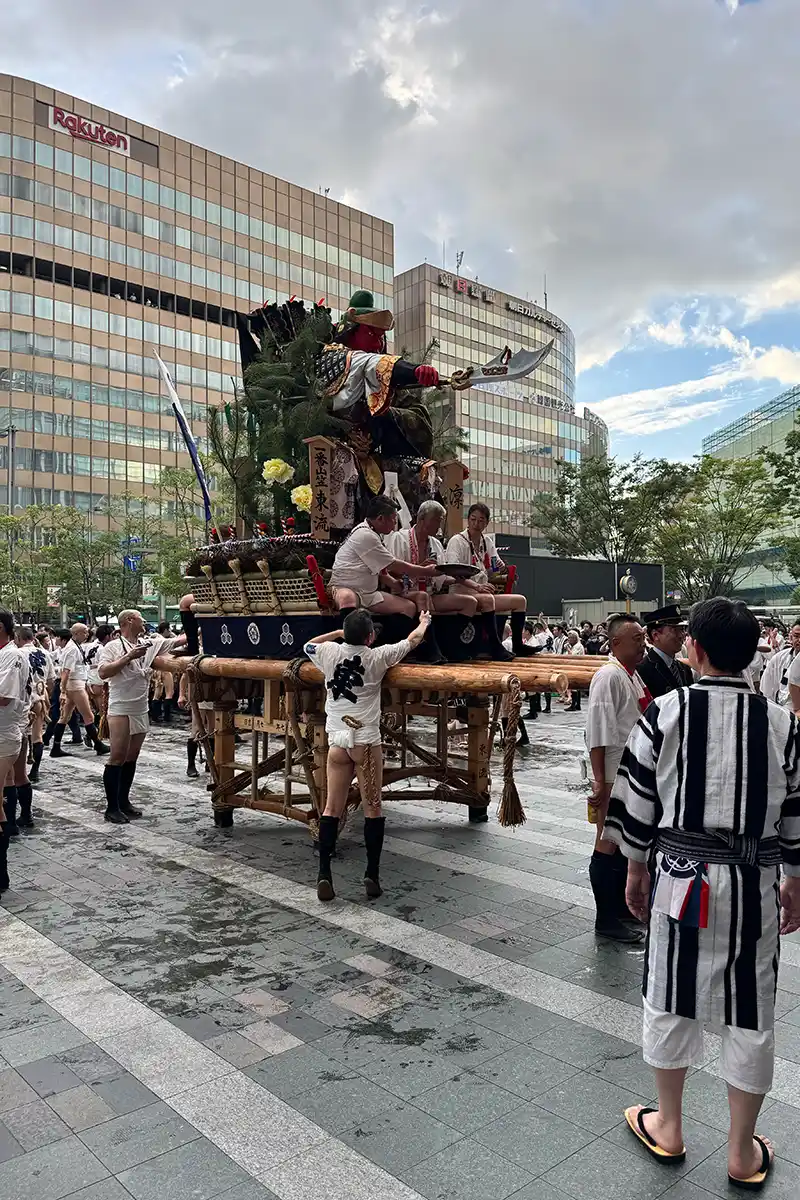 Modern glass buildings—and Yamakasa tradition that’s been alive for centuries.